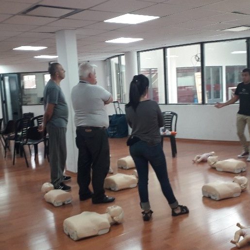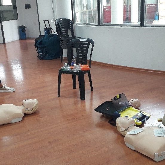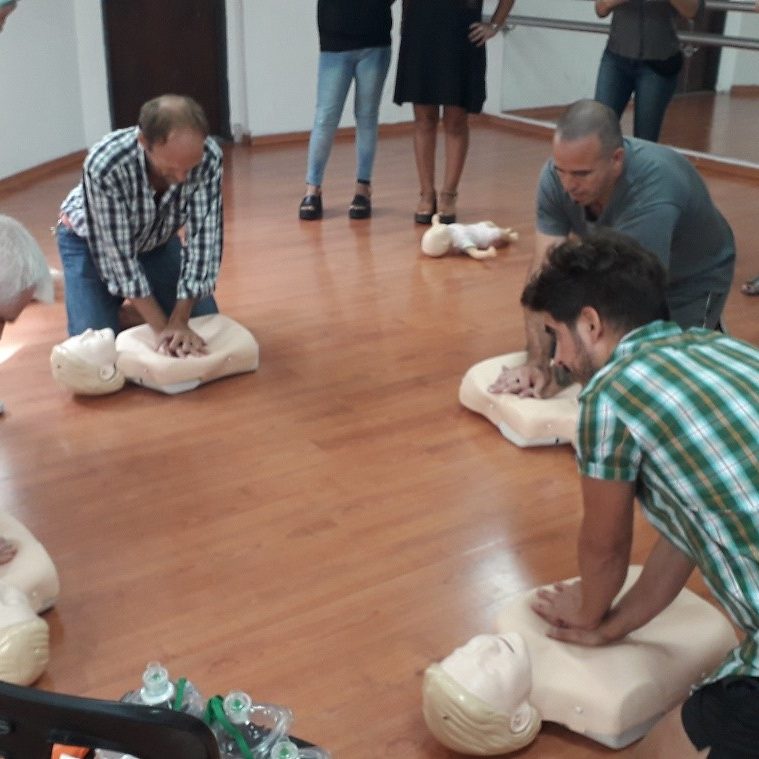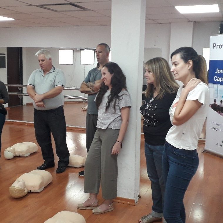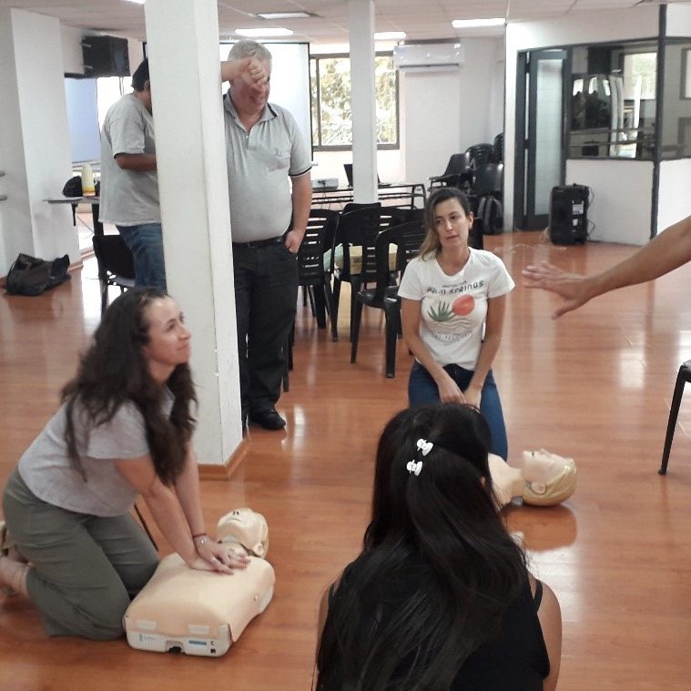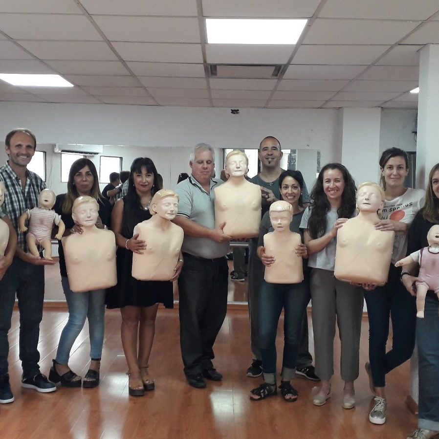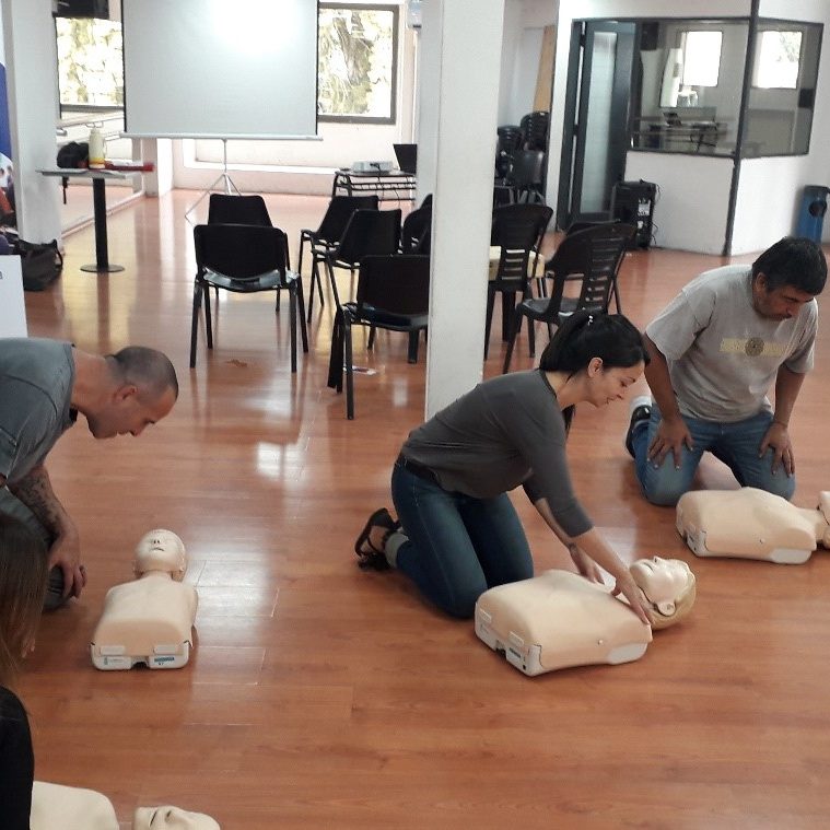 La capacitación contó con un módulo teórico y también se realizó una práctica con maniquíes (de adultos y de niños) para aprender la técnica correcta de RCP. Estos maniquíes cuentan con monitoreo para poder calificar la eficacia de las compresiones, del ritmo y por lo tanto la actuación general de los capacitados.